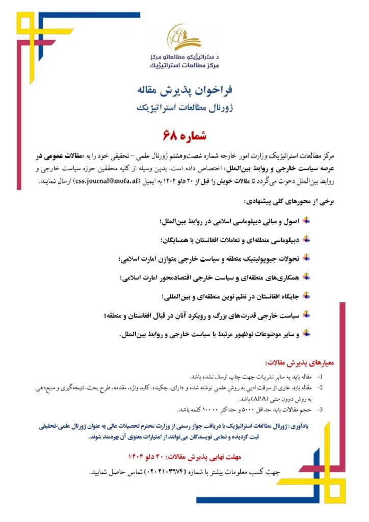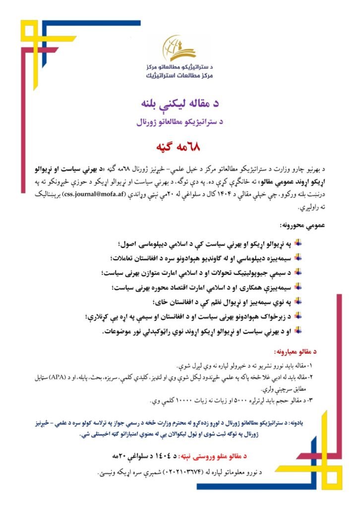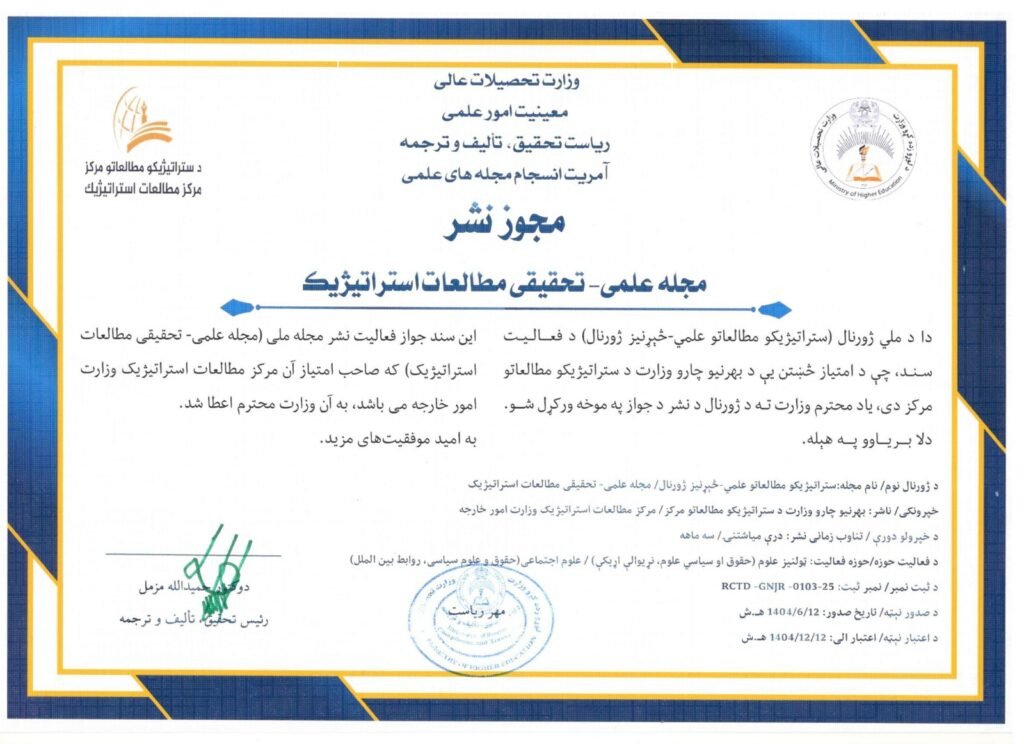 ژورنال مطالعات استراتیژیک وزارت امور خارجه با درک اهمیت تحقیق و به منظور ارج نهادن به تلاشهای نویسندگان جهت بهرهبرداری مادی و معنوی از نتایج تحقیقات...